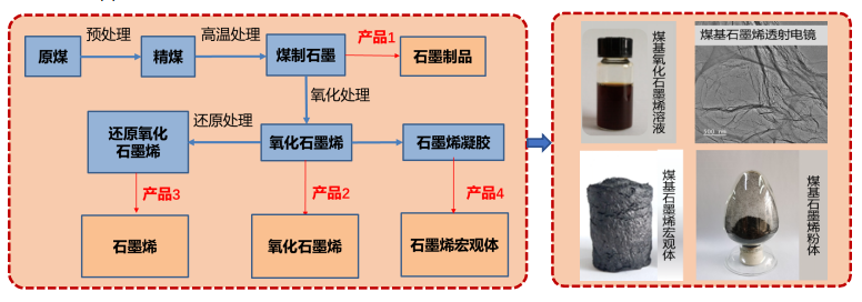 煤基石墨烯系列产品是以煤炭作为原料,通过对原煤进行预处理后再经过高温石墨化得到煤基石墨,然后利用化学氧化、还原方法制备煤基氧化石墨烯、煤基石墨烯以及煤基石墨烯宏观体材料等。根据产品特性差异可用作储能电池负极材料、催化剂和助催化剂以及各种导热、润滑、防腐特种材料的添加剂。煤基石墨烯系列产品技术主要优势在于将廉价煤炭用于生产高附加值的石墨烯材料,具有明显的经济优势和产品优势。