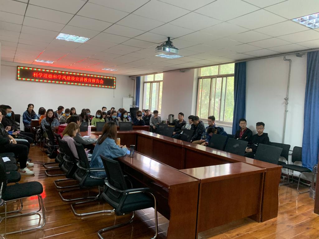 为深入贯彻习近平总书记系列讲话,着力构建科学道德和学风建设宣讲教育长效机制,优化学术诚信环境、树立良好学风。10月9日上午公司开展了“科学道德和学风建设宣传教育报告会”,公司汪广恒老师以风趣幽默的语言,警醒生动的案例进行了宣讲,2020级研究生参加了此次报告会。