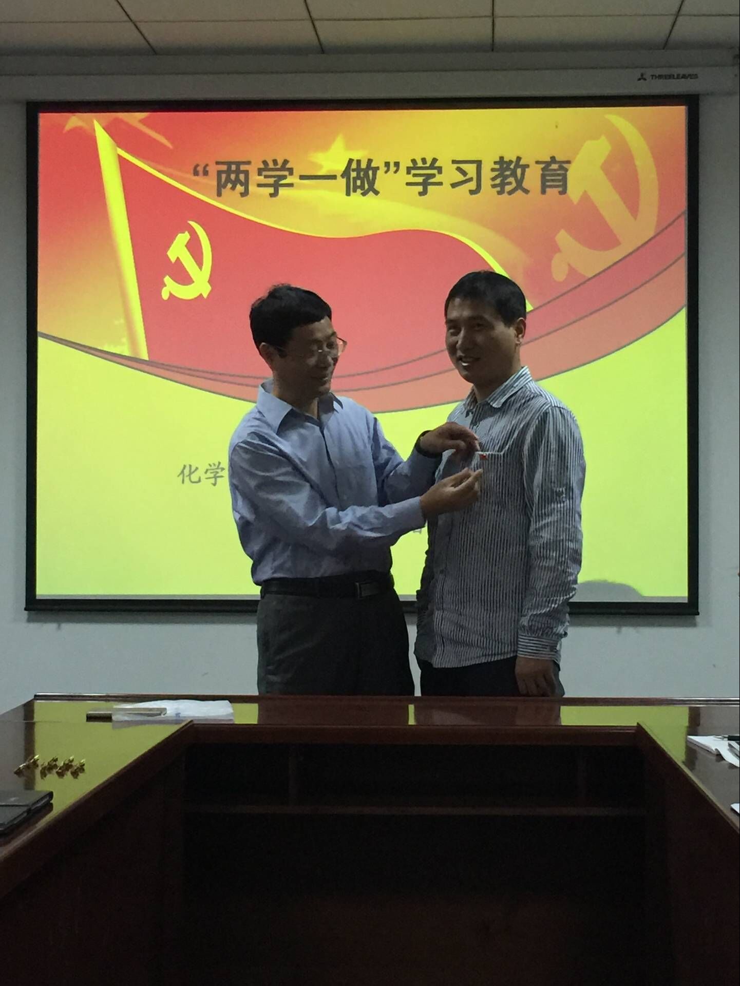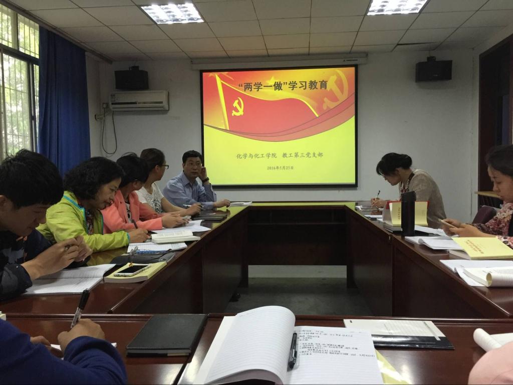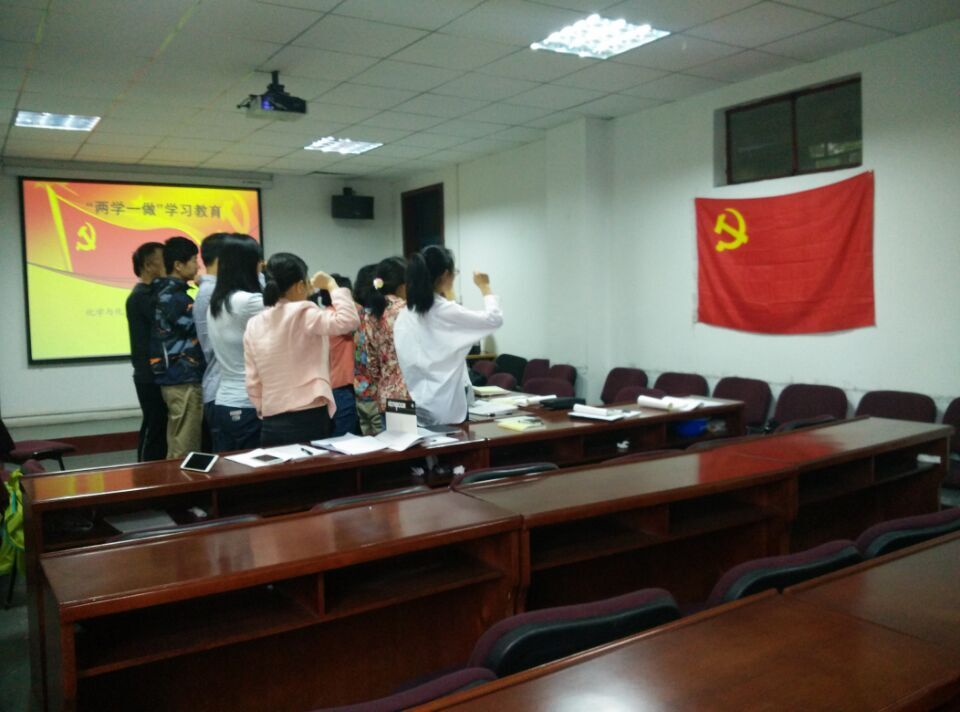5月25日上午,化工公司党委教工第三党支部在雁塔校区公司会议室举行了“两学一做”学习教育暨“重温入党誓词,佩戴党员徽章亮身份”特色活动。公司党委委员周安宁,第三支部全体党员参加了活动。