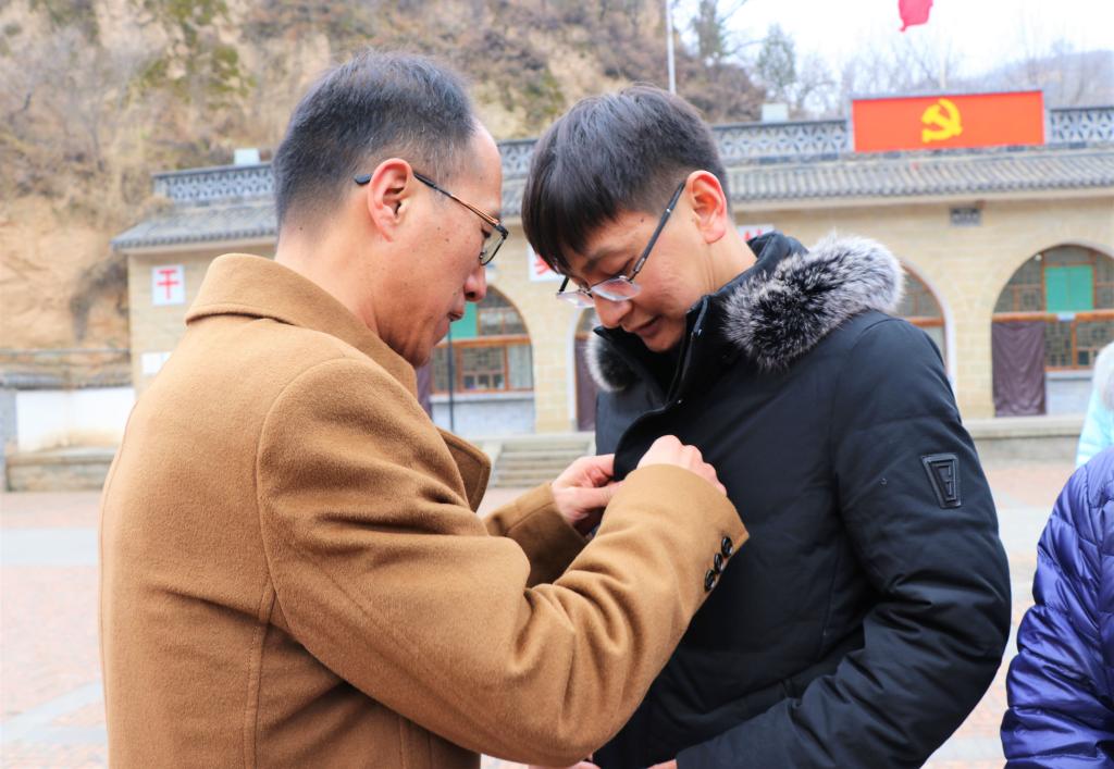 活动最后,在梁家河村史馆前,党委书记张向荣带领全体党员重温入党誓词,唤醒入党初心。并为第四季度入党的8名党员佩戴了党徽,过“政治生日”以此进一步强化党员的身份意识、责任意识、服务意识和奉献意识。
