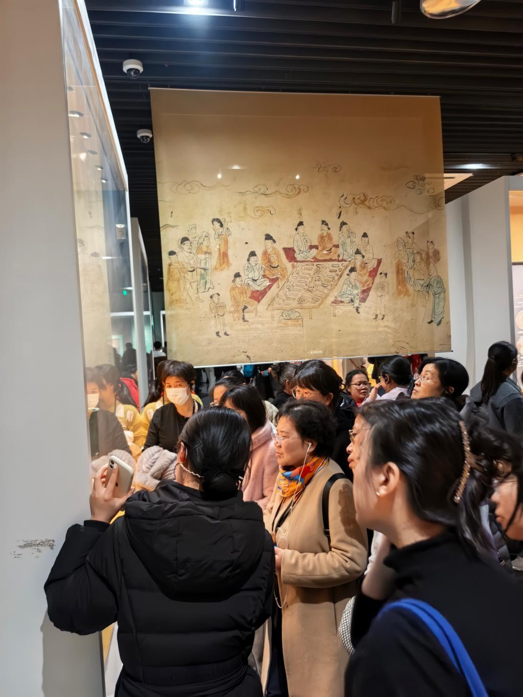 小雁塔的一砖、一瓦仿佛都在诉说着千年的故事,20余名女教师在讲解员引导下,驻足观赏塔身唐代云纹雕饰,聆听“雁塔晨钟”的历史典故。西安博物院藏宝无数,每一件展品都让人目不暇接。在“古都西安-帝都万象”展厅,女教师们仔细研读唐代商贸文书,分析古代颜料提取工艺,从历史文物中探寻化工学科发展的文化基因。