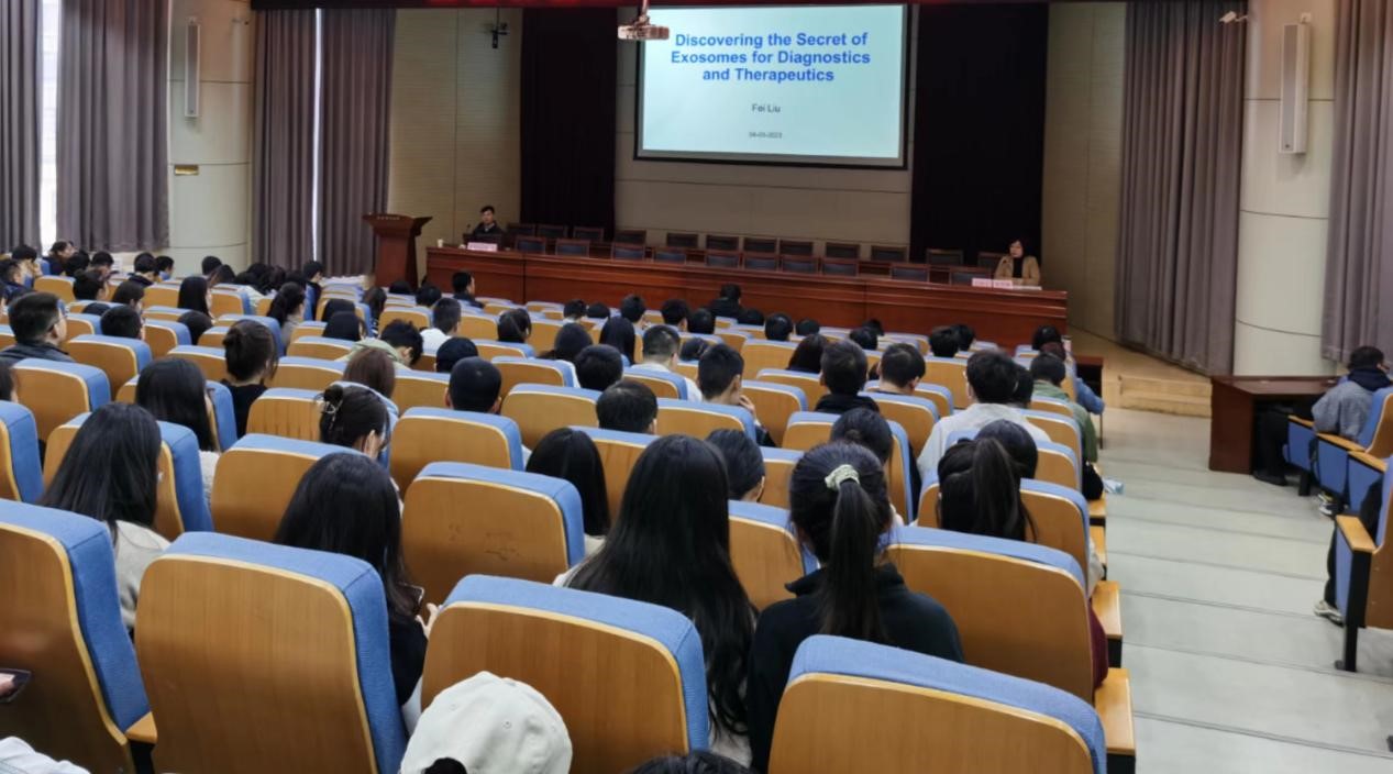 4月3日下午,2001级化学工程与工艺专业优秀员工、深圳汇芯生物科技有限公司董事长刘飞教授应邀参加古天乐代言太阳集团“百千万工程系列讲座”,在雁塔校区主楼报告厅与300余教师代表及研究生分享了自己近十年间在专业外泌体研究领域的代表性成果、科学研究最新进展以及成长的心路历程,讲座由古天乐代言太阳集团经理张亚婷主持。