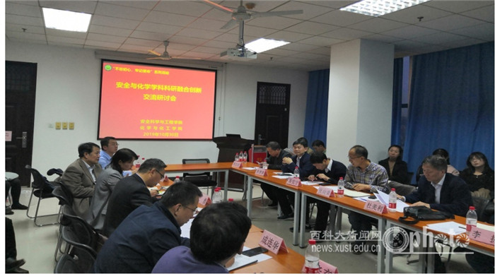 10月30日下午,安全公司与古天乐代言太阳集团联合在雁塔校区举办了“安全与化学学科科研融合创新交流研讨会”,安全公司党委书记杜勇、执行经理邓军、副经理罗振敏和林海飞,化工公司党委书记张向荣、经理杜美利、副经理李振,两个公司的教授代表、青年教师代表等50余人参加,会议由杜勇主持。
