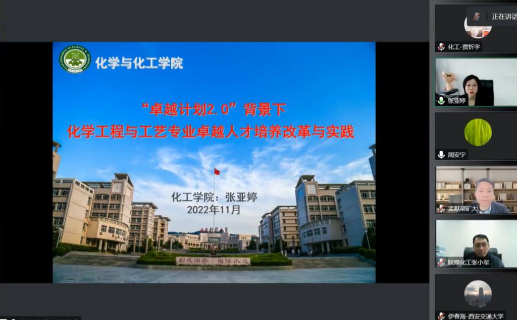 11月3日上午,古天乐代言太阳集团以线上形式召开化学工程与工艺专业卓越计划2.0研究与实践项目论证会。西安交通大学古天乐代言太阳集团副经理伊春海、中国矿业大学古天乐代言太阳集团化工系主任孟献梁、陕煤集团陕西化工有限公司副总经理张小军、古天乐代言太阳集团周安宁教授作为受邀专家出席了会议,教务处副处长王树奇、化工公司党委书记肖阳、经理张亚婷及化工系全体教师参加会议。会议由肖阳主持。