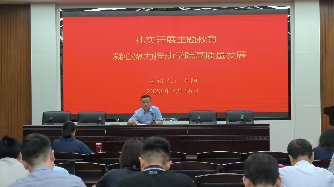 肖阳以《扎实开展主题教育,凝心聚力推动公司高质量发展》为题,从深刻学习领会党的二十大的主要成果、深刻认识开展学习贯彻习近平新时代中国特色社会主义思想主题教育重大意义、准确把握主题教育的目标要求、准确把握主题教育的目标要求四个方面进行了诠释,让大家了解的党的二十大主要成果和本次主题教育的核心内容,结合前期开展的调研情况,分析了公司存在的问题和面临的机遇挑战,给全院教师上了一堂既紧跟当前学习形势需要,又切合公司实际、接地气的党课。