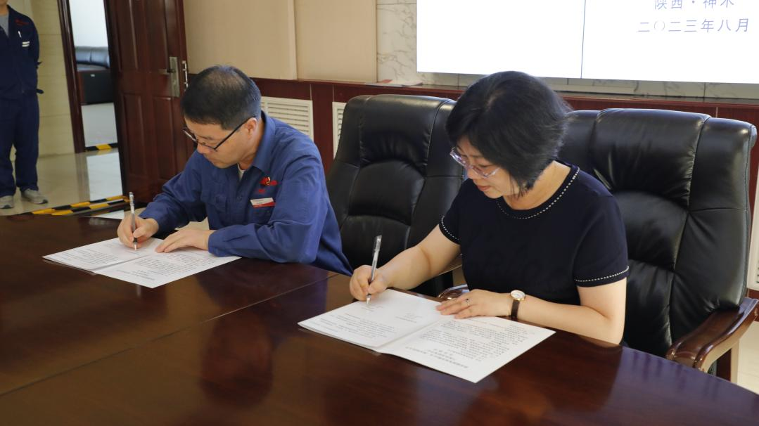 在校企双方各级领导和嘉宾的见证下,张进峰、张亚婷签署了“共建神木能源-西科大兰炭技术研发中心的协议”,马忠印和肖阳共同为“兰炭技术研发中心”揭牌,仪式最后,所有参会嘉宾合影留念,共贺此次揭牌仪式取得圆满成功。