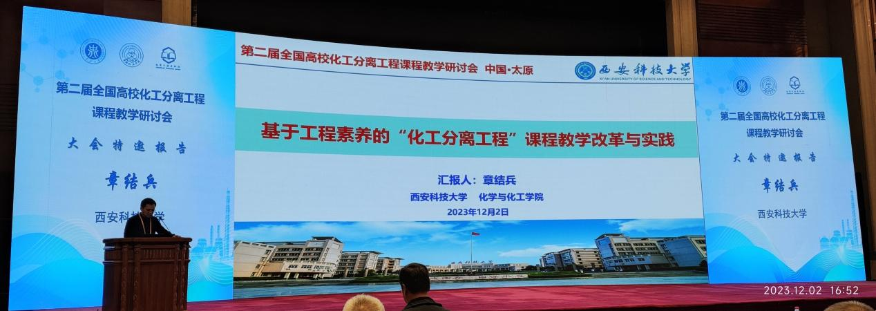 为深入学习贯彻贯彻党的二十大精神,落实立德树人根本任务,坚持“以本为本”,聚焦新时代高校课程建设的新要求新任务新内涵新特色,以化工类专业核 心课程化工分离工程“一流课程”建设为目标,由教育部高等公司化工类专业教学指导委员会主办,中北大学承办的第二届全国高校化工分离工程课程教学研讨会于12月1日至3日在太原举行,包括化工类专业教学指导委员会多位专家、国家一流专业/课程负责人、知名产学研专家和相关课程骨干教师等100余人参加会议。公司贺新福副经理、章结兵副教授参会。