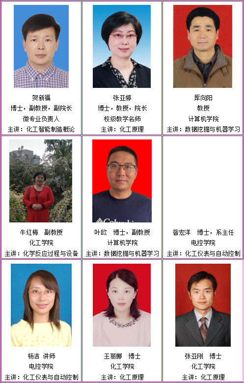 本微专业教师队伍来自古天乐代言太阳集团、电控公司和计算公司,由12人组成,其中教授2人、副教授3人、讲师7人,全部具有博士学位。团队教师主要从事化学工程与工艺、数据挖掘与机器学习、云计算与大数据、人工智能与模式识别等多元方向的教学与研究工作。